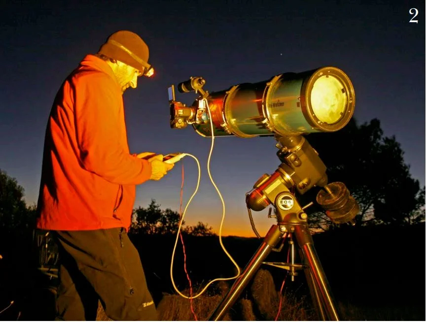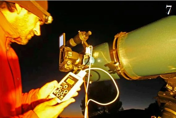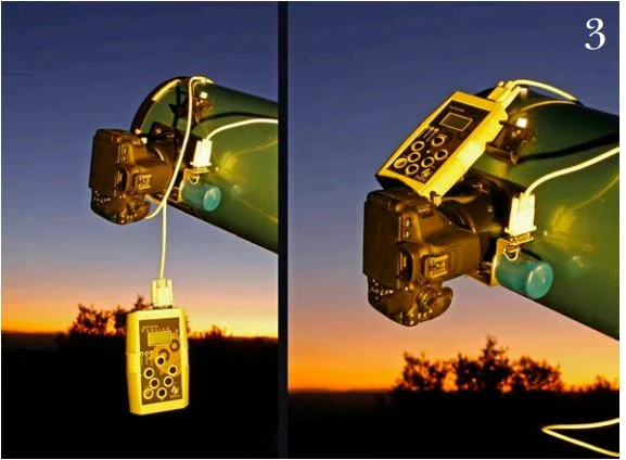 拍完演示用的实拍照片后,我开始在搭载EQ6赤道仪的200mm f/5牛顿反射镜上,实际调试这套Tarsier调焦系统。我们用DB9 线缆将电机与Tarsier控制器连接通电,将部分线缆打结以缩短长度,多余的部分则缠绕在寻星镜支架上,以便固定控制器。