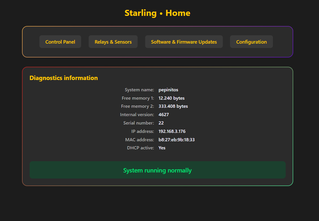 • 控制连接设备,包括指示灯、警报和除湿设备。除此之外,Starling 提供3个自由继电器;